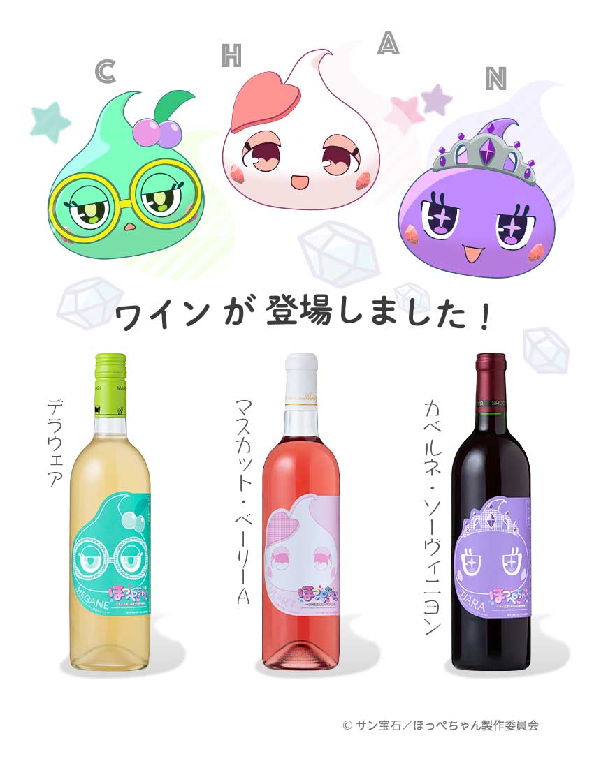 アニメ 「ほっぺちゃん~サン王国と黒ほっぺ団の秘密~」 ほっぺちゃんワイン6種セット 19,800円(税込) -