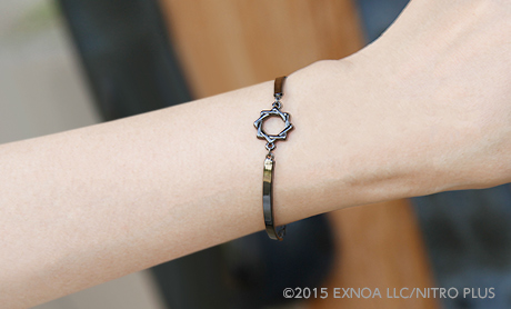 ボトルアクセサリー ボトルアクセサリーはハーフバングル風のアクセサリーです。全体のお色やモチーフなど、肥前忠広のイメージに合わせてデザインしました。ワインを嗜んだ後はお好きなところに付けてご使用ください。